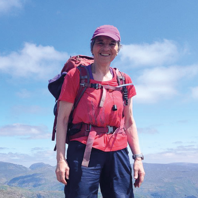 Sue holds the MLT Mountain Leader (Summer) Award and NNAS Gold Navigation Award. She first got into walking through Girl Guides and the Duke of Edinburgh Award Scheme.